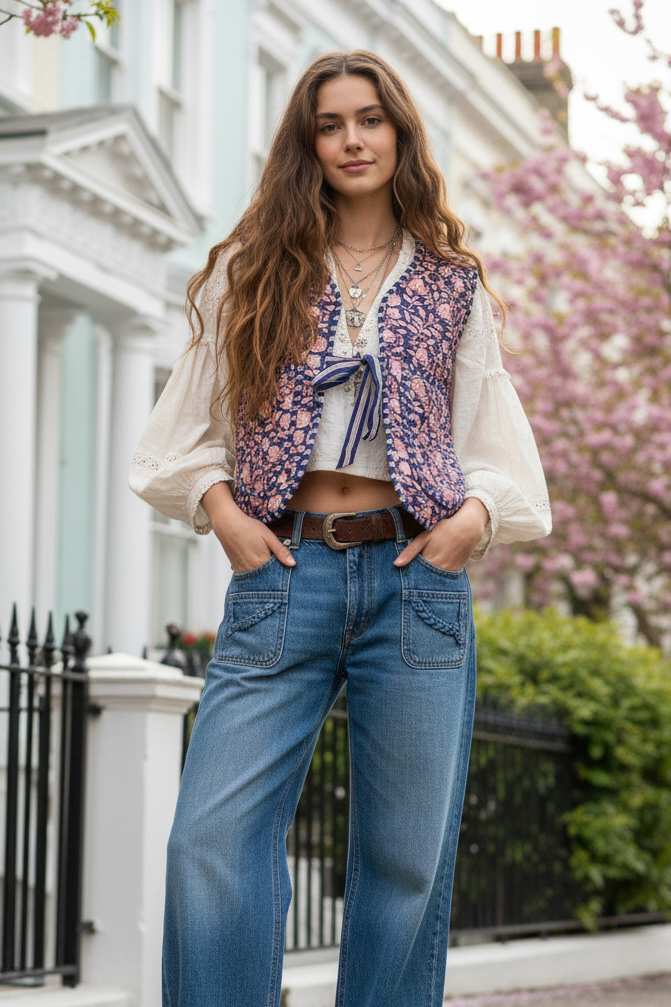 QUILT WAISTCOAT BLUSH-NAVY REVERSIBLE
