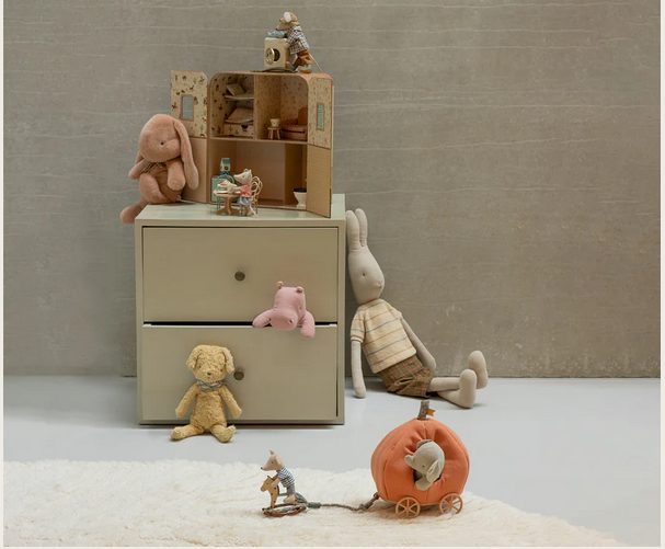Que comience el cuento de hadas… El carruaje perfecto para la familia real de ratones cuando tienen que salir del castillo. La tela puede variar.