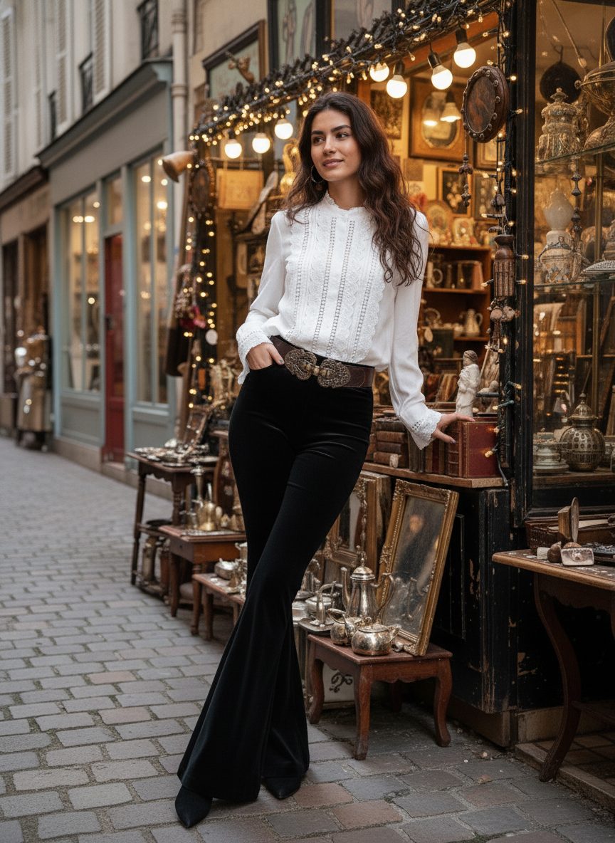 Blusa de estilo bohemio con mangas abullonada y detalles en cuello y parte delantera