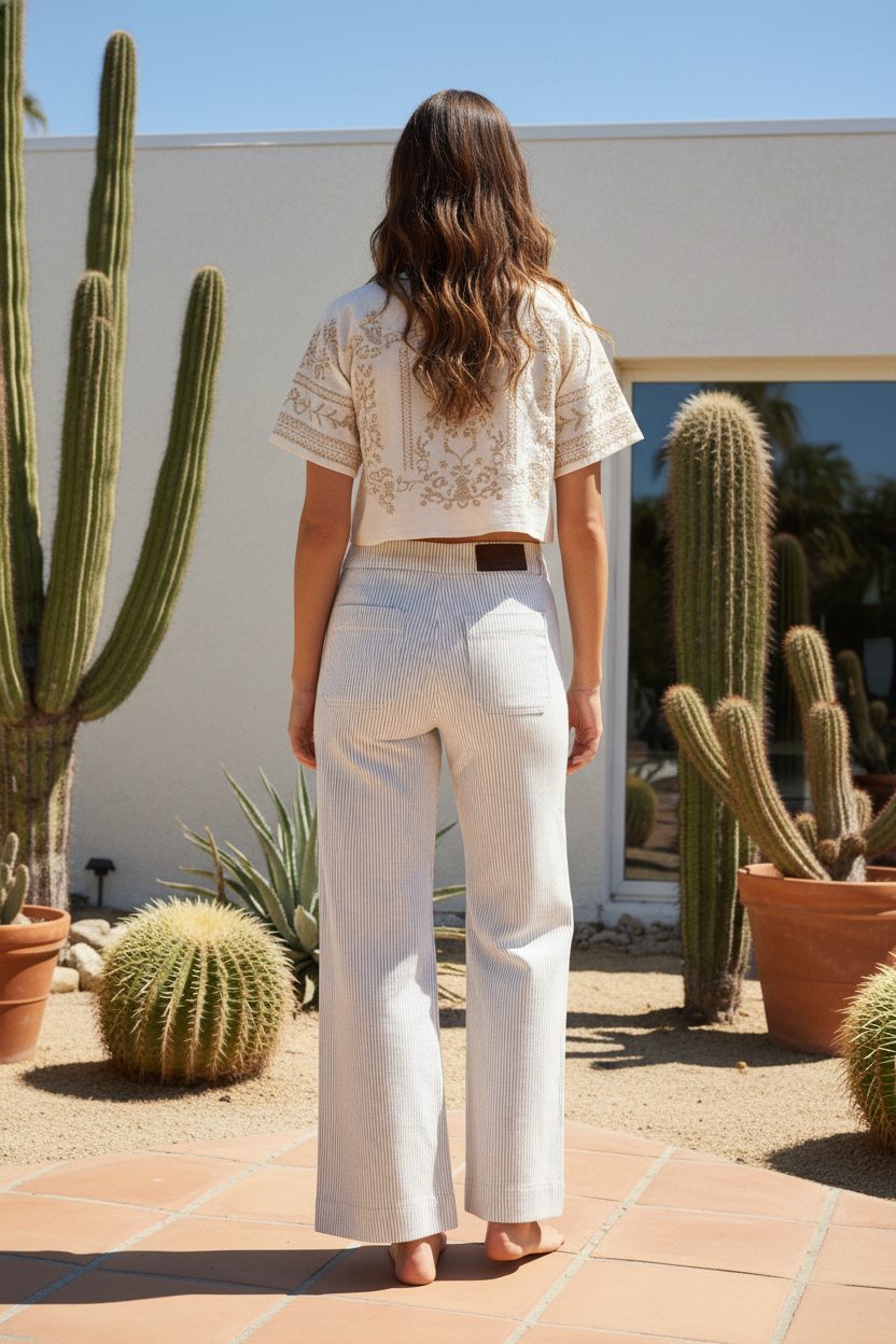 MARAIS ECRU STRIPPED CROPPED JEANS VAQUERO DE RAYAS CON BOTONES