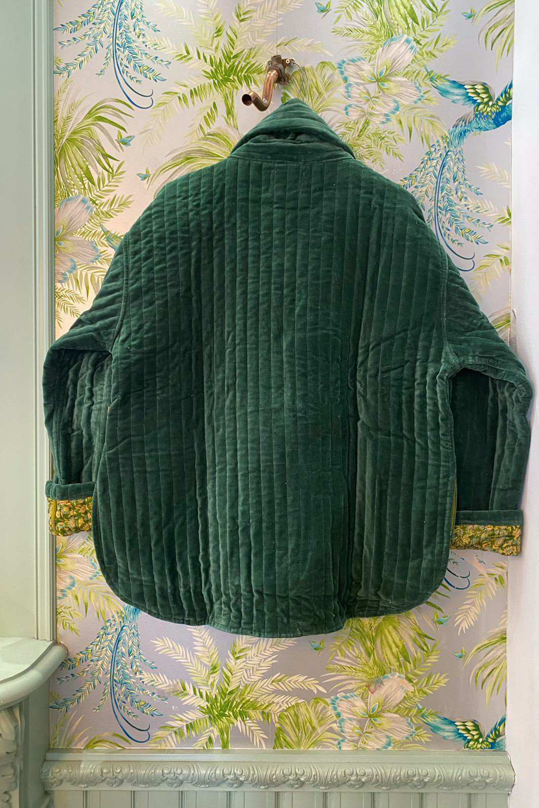 Kimono  de terciopelo acolchado reversible. Interior de seda estampada, cada interior es único y puede variar de la foto mostrada . Bajo redondeado y mas largo en la espalda . Con bolsillos en la cara exterior.