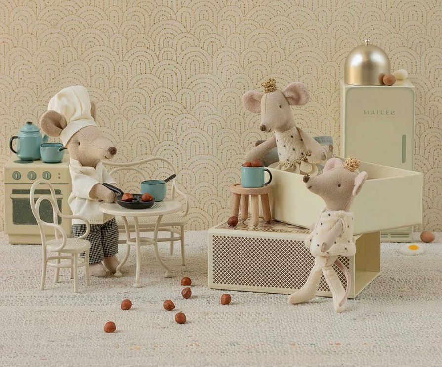 Un juego encantador con un ratón jefe, una olla de sopa y cuchara. Haz que la hora de la cena sea un juego con este dulce juego. Combínalo con la colección de cocina y comida en miniatura de Maileg para que la historia continúe
