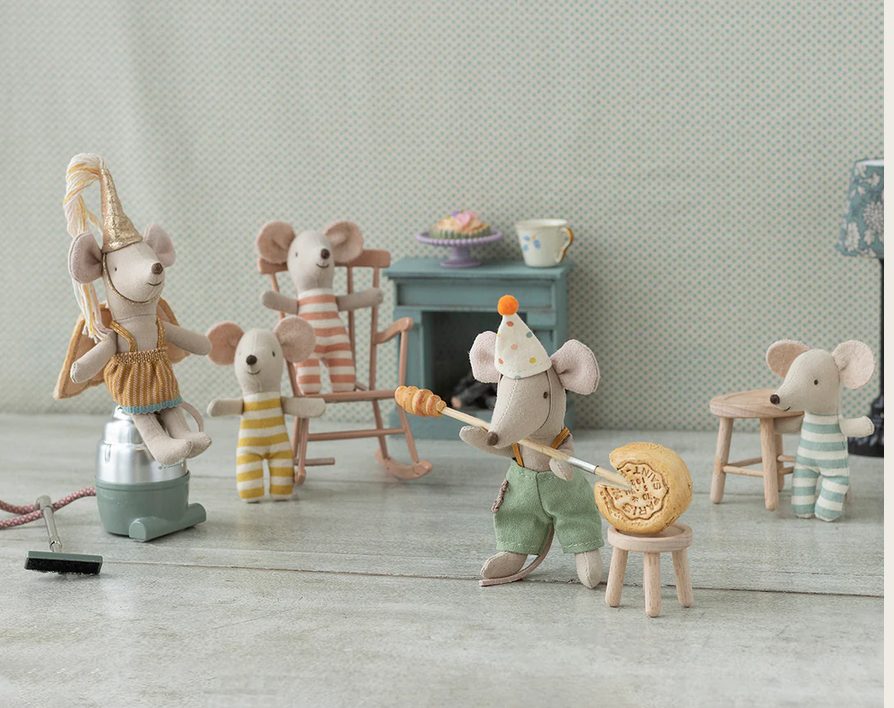 Viste a este ratoncito con este bonito conjunto de ropa de payaso. Este conjunto incluye pantalones con tirantes y un sombrero; todo empaquetado en una pequeña maleta de metal para que sea fácil de llevar mientras viaja.