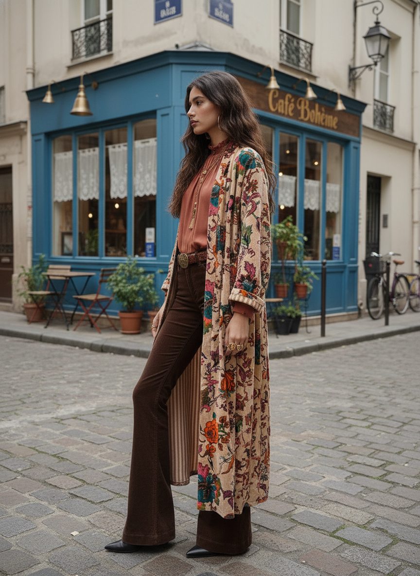 THE VELVET UNDERGROUND MAXI KIMONO BEIGE GARDEN