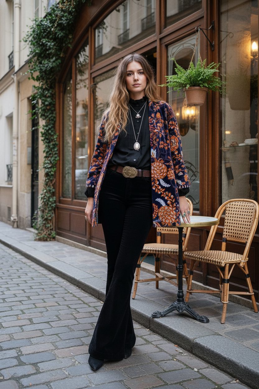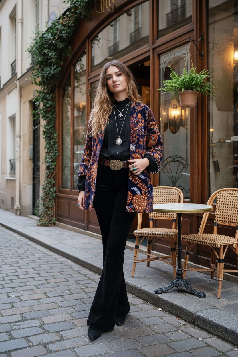 Kimono estampado  de terciopelo de inspiración vintage. Reversible, con una cara estampada y la de rayas,  con bolsillos.