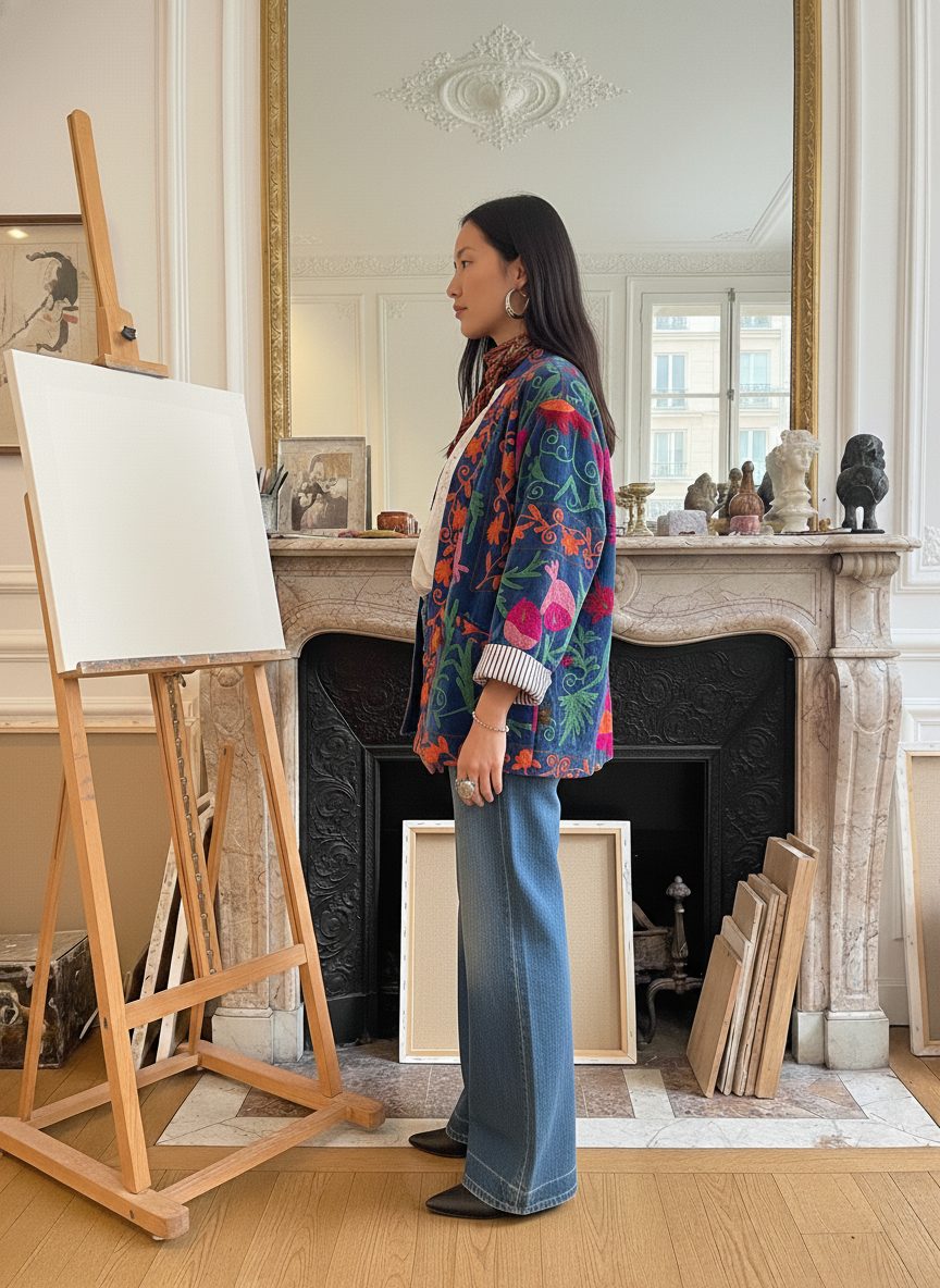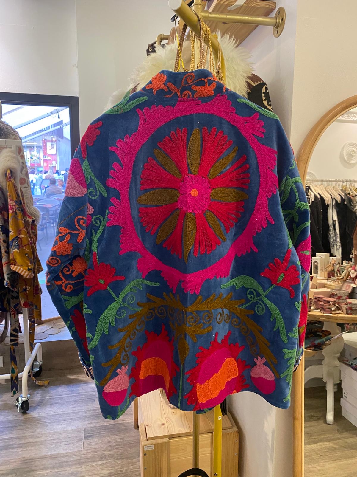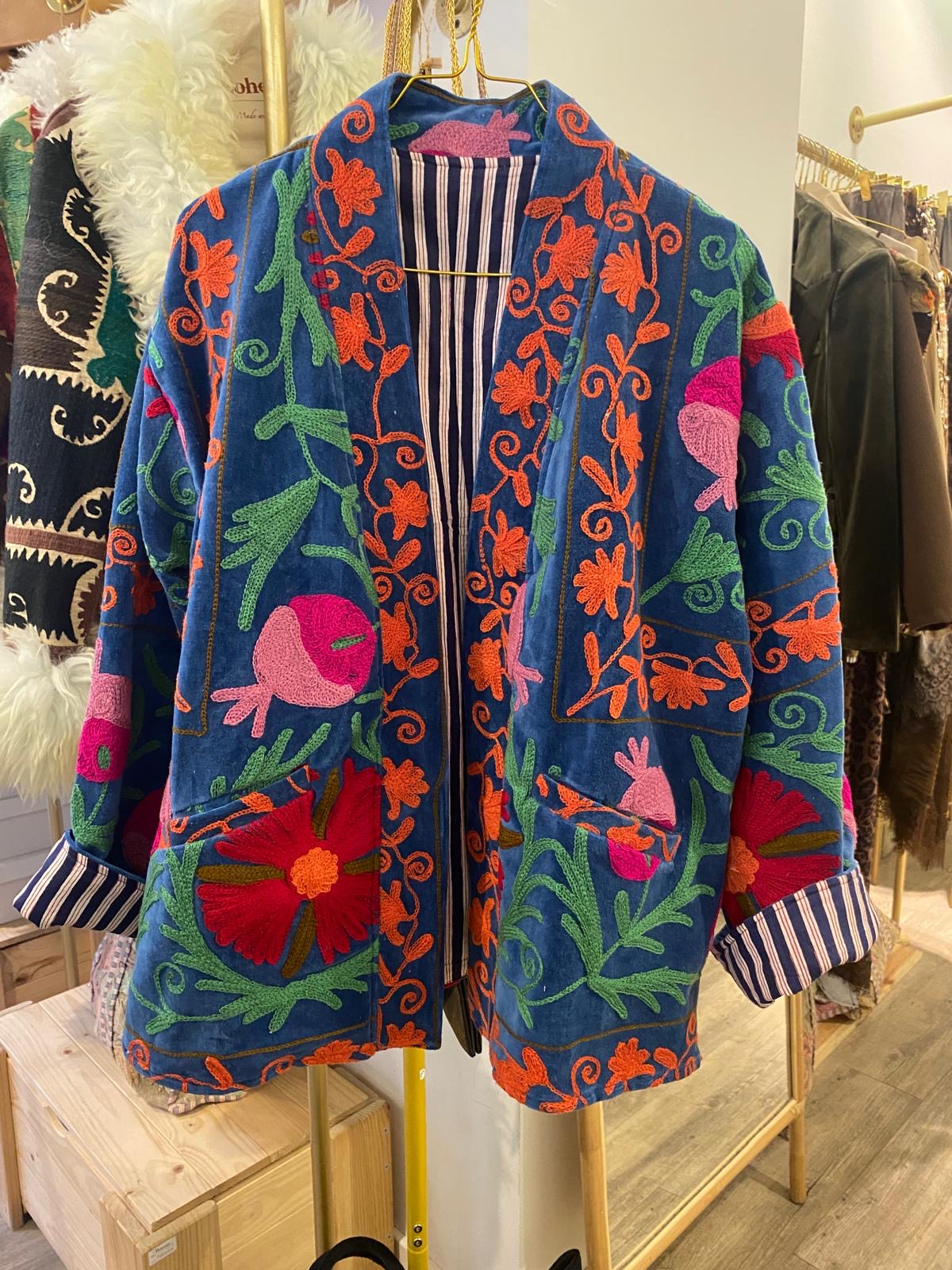 Chaqueta-kimono de terciopelo completamente bordado de forma artesanal.
