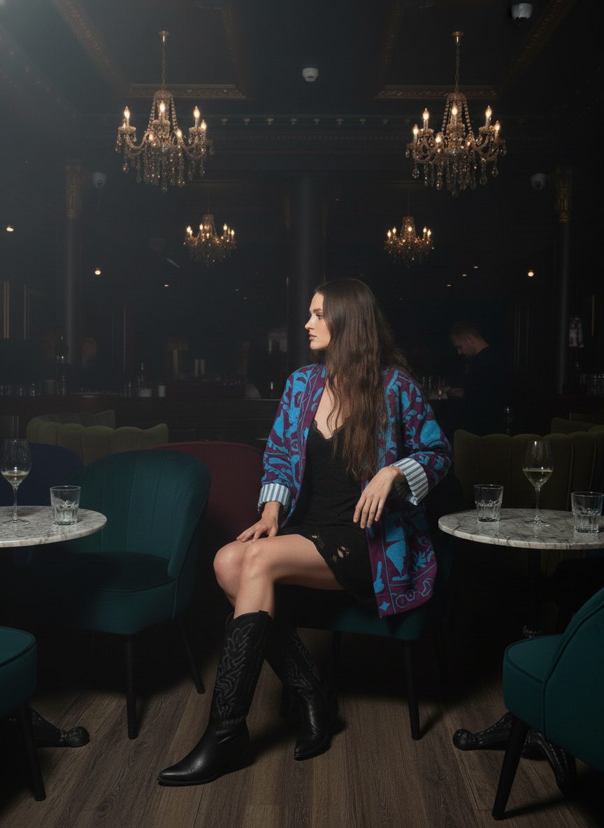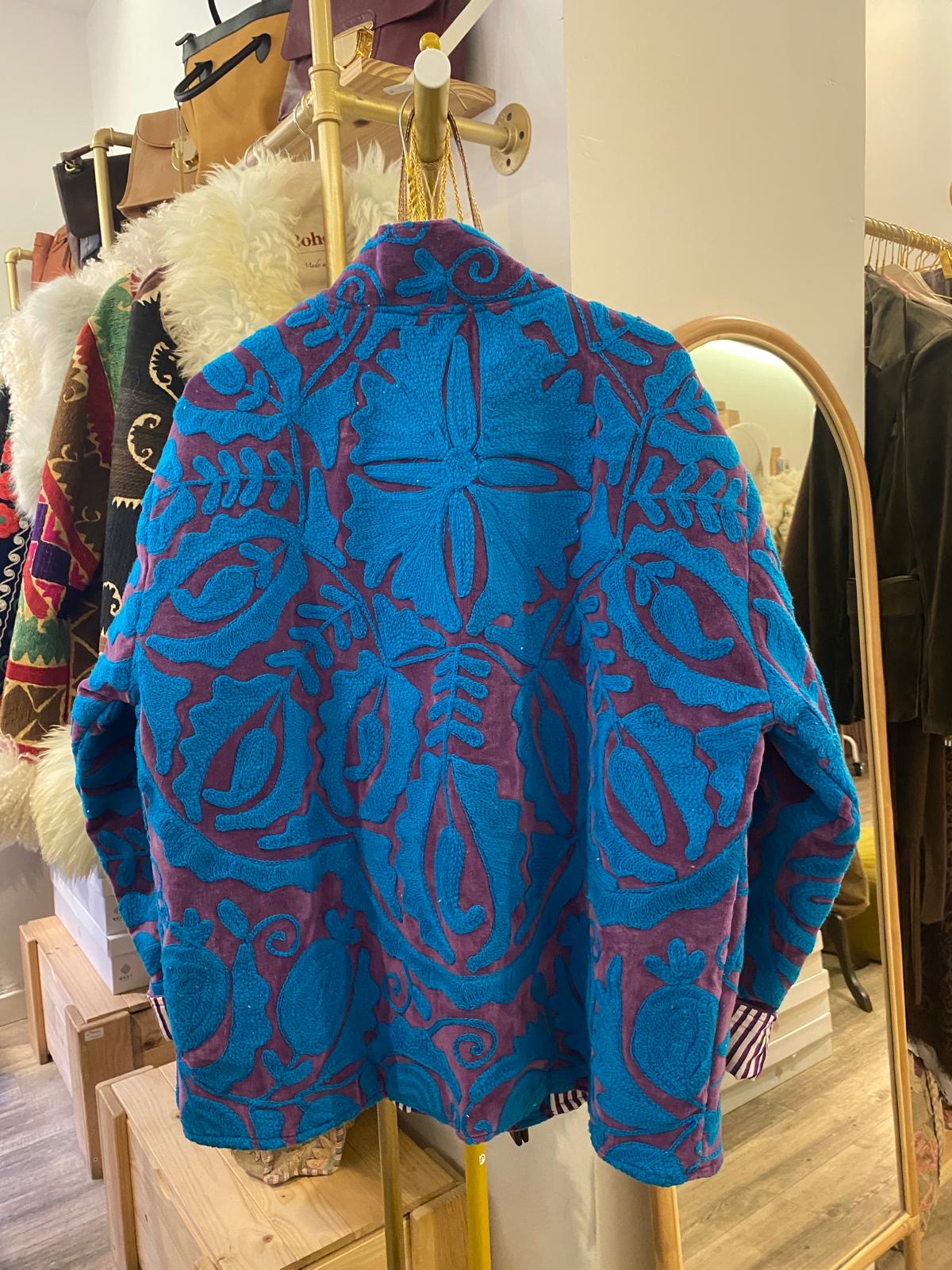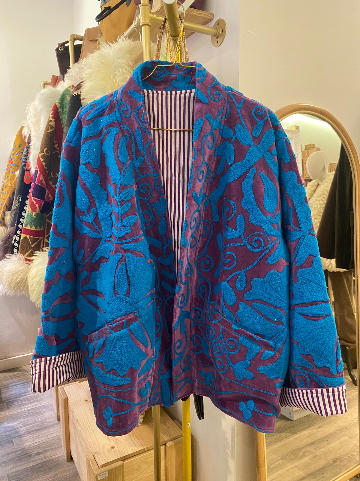 Chaqueta-kimono de terciopelo completamente bordado de forma artesanal.