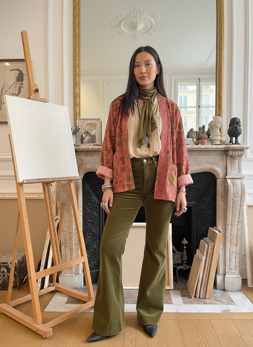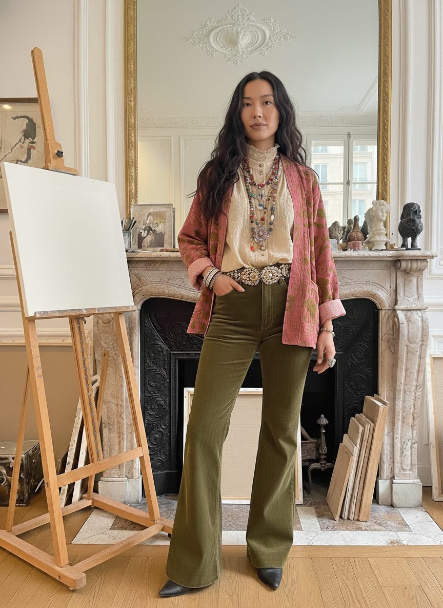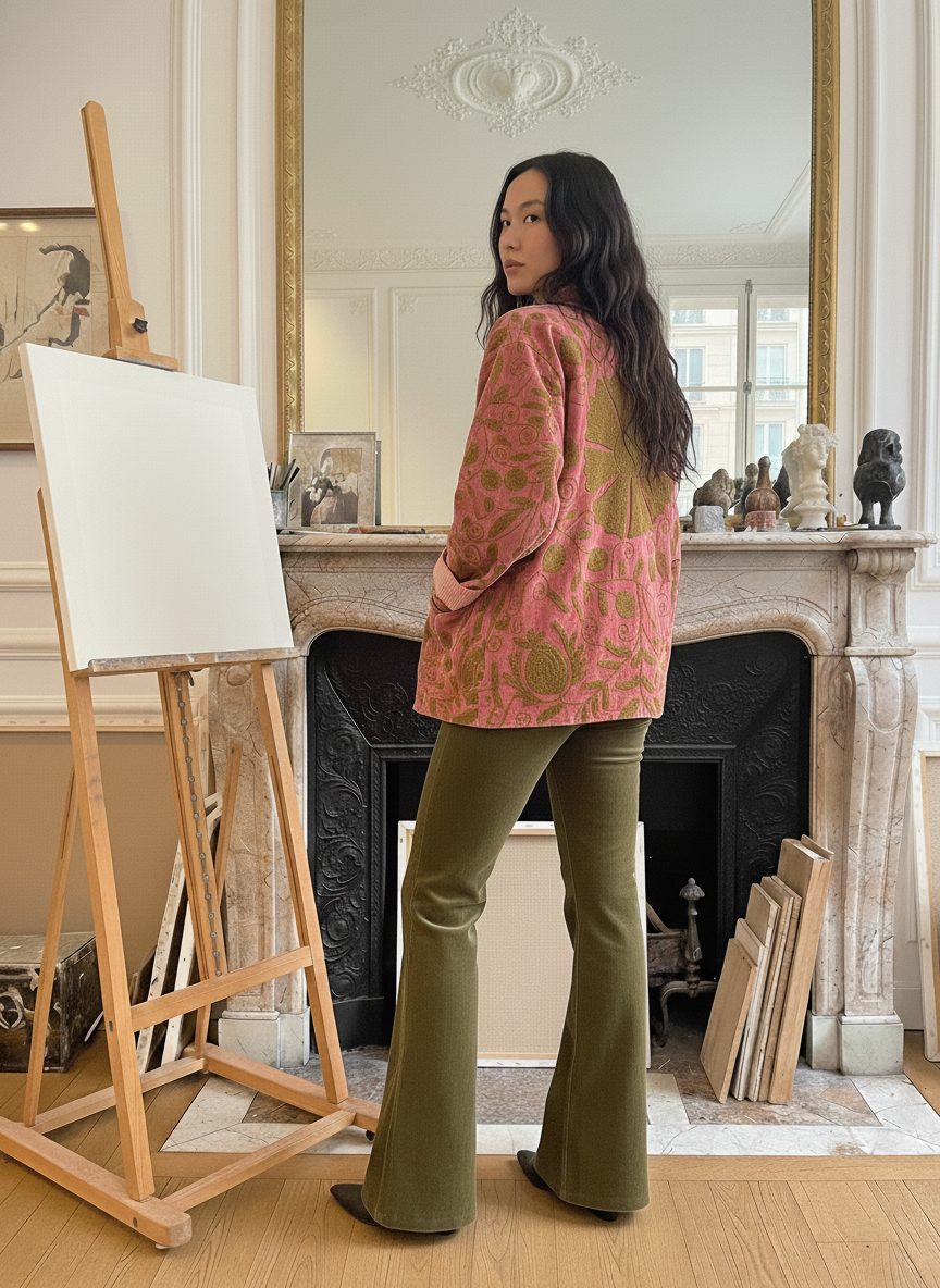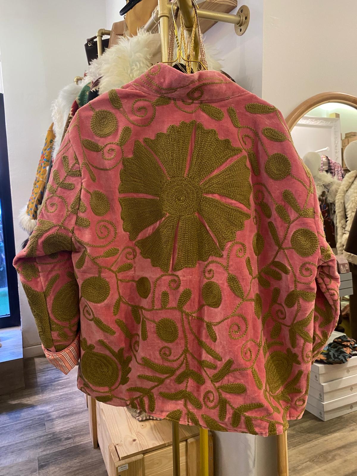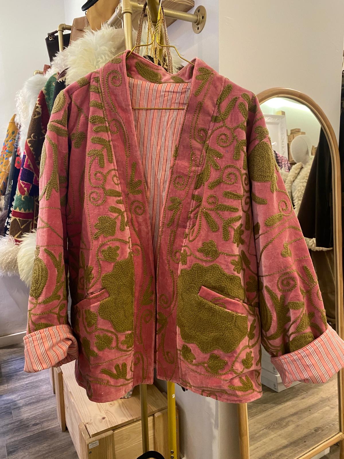 Chaqueta-kimono de terciopelo completamente bordado de forma artesanal.