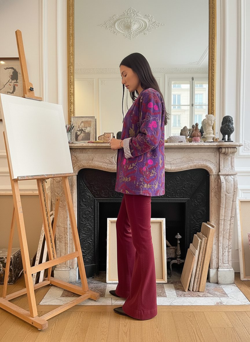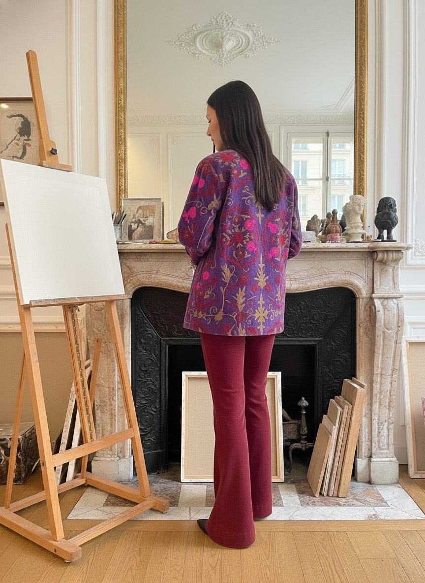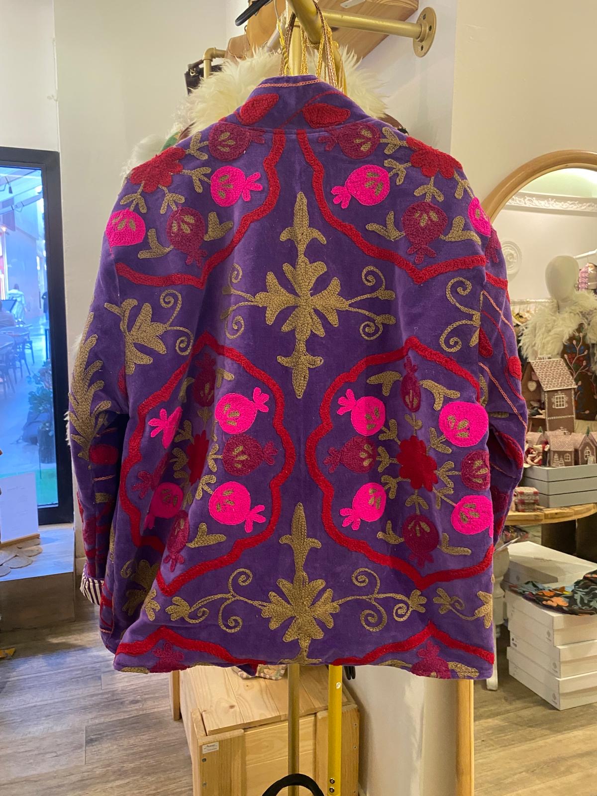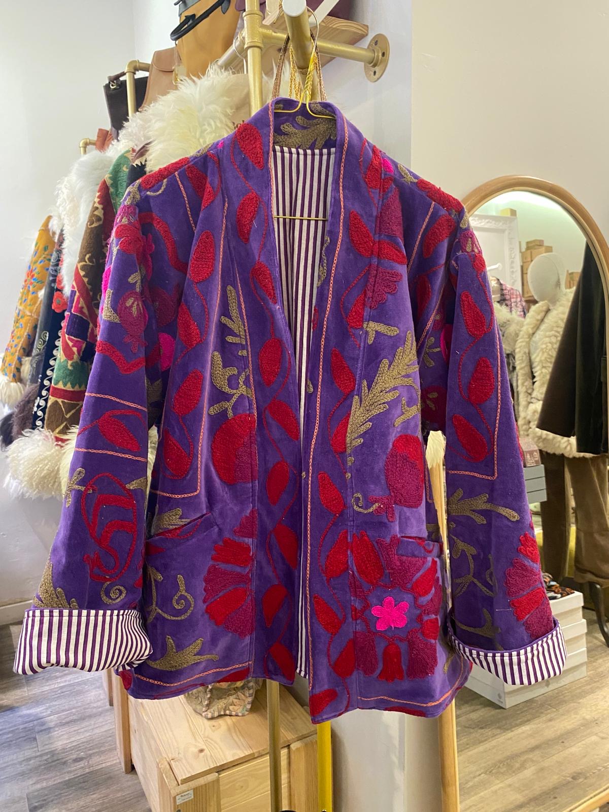 Chaqueta-kimono de terciopelo completamente bordado de forma artesanal.