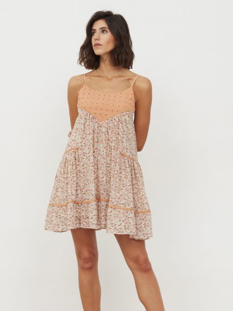 Vestido corto estampado con bordado.