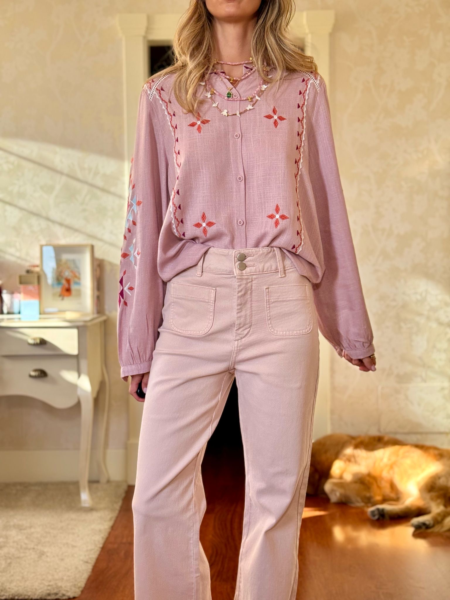 WOODSTOCK FLARED JEANS BLUSH