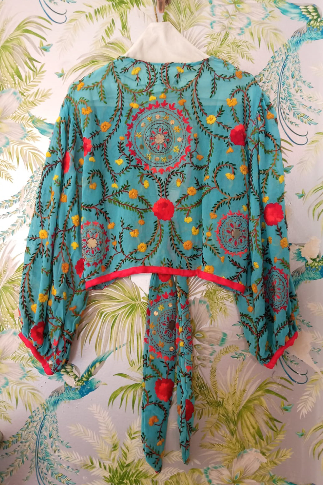 URIS TOP CORTO MANGA CORTA ESTAMPADO CON BORDADO BLUE